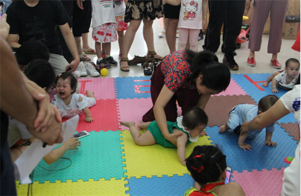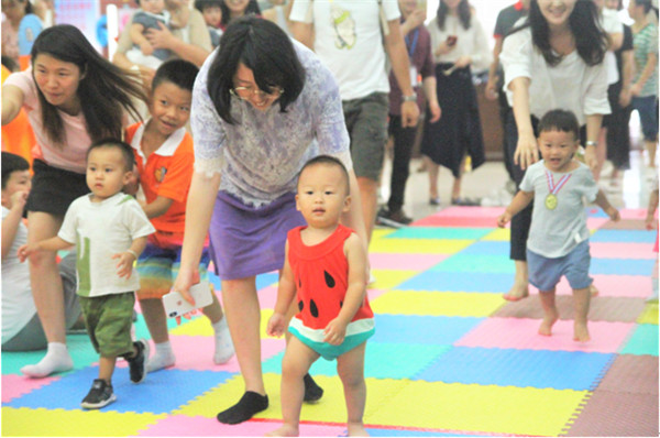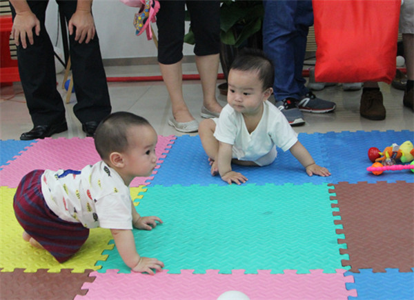 臺(tái)上表演熱熱鬧鬧引人注目,臺(tái)下的小寶寶們也不甘落后。爬爬大賽和跑跑大賽的寶寶們蓄勢待發(fā),裁判哨一吹響,各家萌娃便在爸爸媽媽的指引下,向終點(diǎn)發(fā)起“進(jìn)攻”。