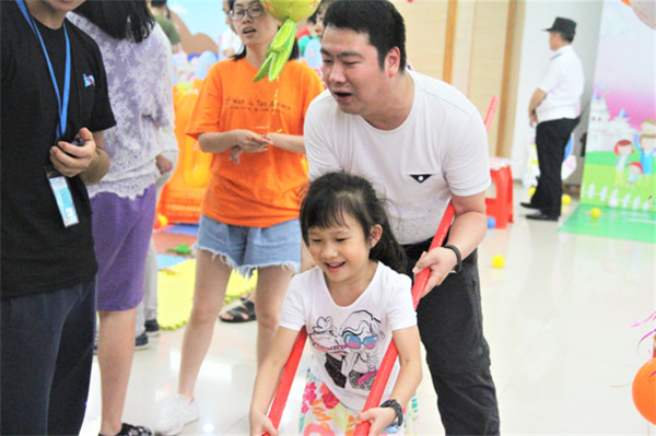 最受歡迎的還屬游園會(huì)環(huán)節(jié)。現(xiàn)場精心設(shè)計(jì)了6個(gè)需要親子合作完成的游戲項(xiàng)目。在精彩有趣的游戲面前,父母們也“返老還童”,和孩子盡情享受童真一刻。