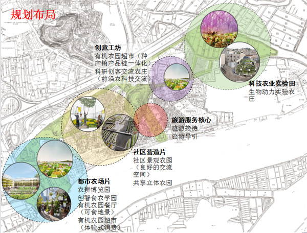 參賽隊伍通過分析侖頭村的現(xiàn)狀問題和發(fā)展機遇,提出應(yīng)發(fā)揮周邊生態(tài)優(yōu)勢,在避免大拆大建的原則下,以植入性的景觀改造作為觸媒,大力發(fā)展以農(nóng)業(yè)旅游為載體的第三產(chǎn)業(yè),營造健康、開放、共享的社區(qū)環(huán)境。設(shè)計方案參考菲律賓阿納納斯新社區(qū)、泰國都市農(nóng)場等案例,提出了發(fā)展都市農(nóng)場、科技農(nóng)業(yè)試點、農(nóng)莊創(chuàng)客基地、農(nóng)作創(chuàng)智教育、社區(qū)景觀農(nóng)園等規(guī)劃策略,并對在社區(qū)中營造農(nóng)業(yè)景觀提供了具體實施路徑。