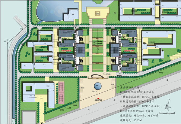 暨南大學(xué)是中國第一所由國家創(chuàng)辦的華僑學(xué)府,是目前全國境外生最多的大學(xué),是國家“211工程”重點(diǎn)綜合性大學(xué),直屬國務(wù)院僑務(wù)辦公室領(lǐng)導(dǎo)。2012年5月19日,暨南大學(xué)番禺校區(qū)破土動(dòng)工奠基;2014年9月落成,順利完成一期建筑計(jì)劃。番禺校區(qū)的BD組團(tuán)由我院都市建筑設(shè)計(jì)室負(fù)責(zé)設(shè)計(jì),其中B組團(tuán)為學(xué)院行政樓,D組團(tuán)為教學(xué)實(shí)驗(yàn)樓,呈左右對稱分布,建筑高度為15.95米,建筑面積為18980.4平方米。
