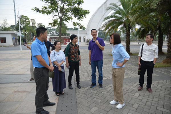 隨后,在黃處長的引領(lǐng)下,回訪組又參觀考察了暨南大學(xué)新校區(qū)的圖書館、綜合體育館等場所設(shè)施,途經(jīng)廣場、學(xué)生宿舍、飯?zhí)谩Ⅲw育場等地,深入了解暨大的建設(shè)發(fā)展情況,學(xué)習(xí)借鑒設(shè)計(jì)經(jīng)驗(yàn)。