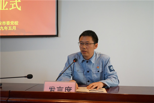 5月12日下午,簡潔而隆重的學習活動開班儀式在延安市委黨校舉行。郭壯獅副廳長作開班講話,中共延安市委黨校副校長王鳳蓮致歡迎辭并向本次錘煉活動授予班旗。