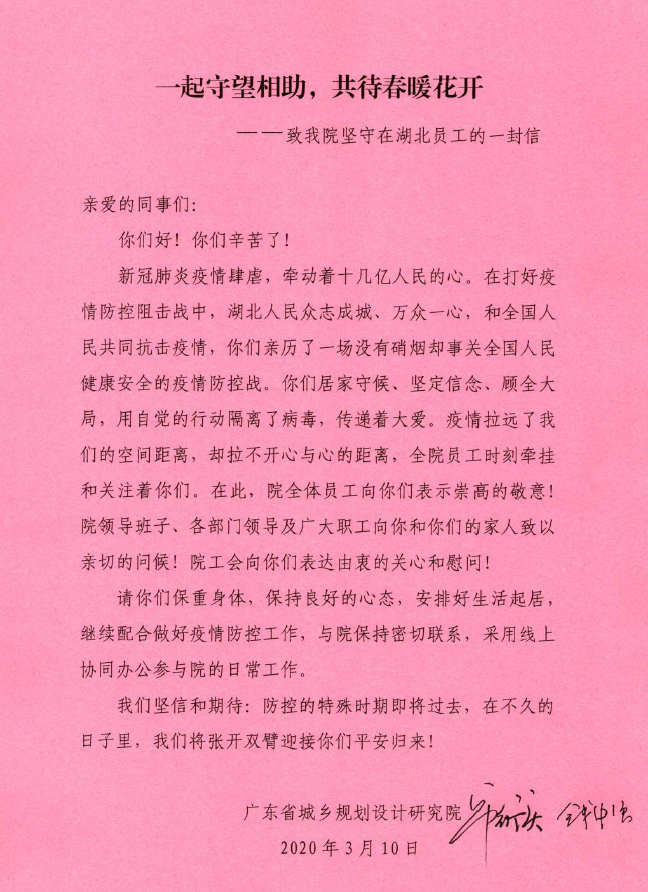 致信問(wèn)候堅(jiān)守在湖北的同事