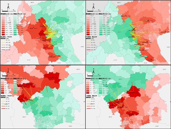 研究構(gòu)建“1+4+4+4”創(chuàng)新研究體系,以1套多源大數(shù)據(jù)為基礎(chǔ),1個(gè)跨城通勤行為為創(chuàng)新切入點(diǎn),耦合大數(shù)據(jù)處理技術(shù)、地理編碼、GIS高級(jí)空間分析、圖像形態(tài)學(xué)算子等技術(shù),針對(duì)廣佛清肇重點(diǎn)研究區(qū)域,從市-區(qū)(縣)-街道-小區(qū)等4重尺度層層深入,真正實(shí)現(xiàn)了定量刻畫與細(xì)致梳理城際居住現(xiàn)狀規(guī)模、空間分布及類型等4種維度特征規(guī)律,并剖析總結(jié)了當(dāng)前珠三角及周邊地區(qū)城際居住發(fā)展面臨的矛盾問題,提出科學(xué)合理的工作建議。