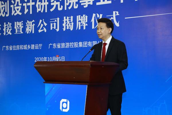 省旅控集團(tuán)車持強(qiáng)董事長(zhǎng)致辭。車董事長(zhǎng)表示,省規(guī)劃院轉(zhuǎn)企改制是省委、省政府對(duì)省旅控集團(tuán)改革發(fā)展關(guān)心和支持的具體體現(xiàn)。省規(guī)劃院自建院以來(lái),積累了豐富經(jīng)驗(yàn),形成了諸多優(yōu)勢(shì),為廣東城鄉(xiāng)規(guī)劃建設(shè)作出重要貢獻(xiàn),省規(guī)劃院事轉(zhuǎn)企后納入省國(guó)資體系,有利于發(fā)揮市場(chǎng)在資源配置中的決定性作用,進(jìn)一步激發(fā)其發(fā)展新活力。省規(guī)劃院的加入必將為集團(tuán)有效提升企業(yè)綜合競(jìng)爭(zhēng)力和影響力,構(gòu)建全產(chǎn)業(yè)鏈發(fā)展新格局,實(shí)現(xiàn)“旅游集大成者”的戰(zhàn)略目標(biāo)和高質(zhì)量發(fā)展創(chuàng)造有利條件、提供有力支撐。省旅控集團(tuán)有信心做好省規(guī)劃院的接收工作,更有責(zé)任、有決心、有能力支持新公司走的更遠(yuǎn)、更穩(wěn)、更優(yōu),未來(lái)將充分發(fā)揮集團(tuán)品牌優(yōu)勢(shì)、資源優(yōu)勢(shì)和管理優(yōu)勢(shì),使其成為省旅控集團(tuán)可持續(xù)發(fā)展的第六大板塊。省旅控集團(tuán)將按照轉(zhuǎn)企改制實(shí)施方案要求,抓緊推進(jìn)新公司混合所有制改革和培育上市工作,努力將其打造為全國(guó)規(guī)劃院和我省事業(yè)單位轉(zhuǎn)企改制的“成功樣本”,積極推動(dòng)其成為國(guó)際國(guó)內(nèi)具有競(jìng)爭(zhēng)力和影響力的一流綜合設(shè)計(jì)機(jī)構(gòu)。