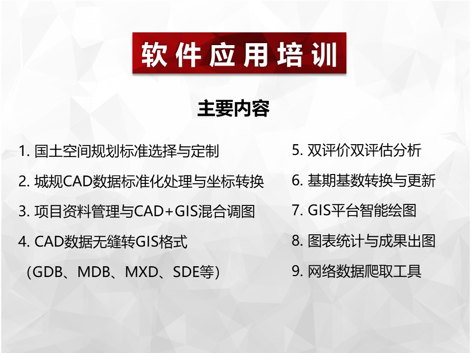 主題:國(guó)土空間規(guī)劃GIS+CAD雙平臺(tái)應(yīng)用培訓(xùn)