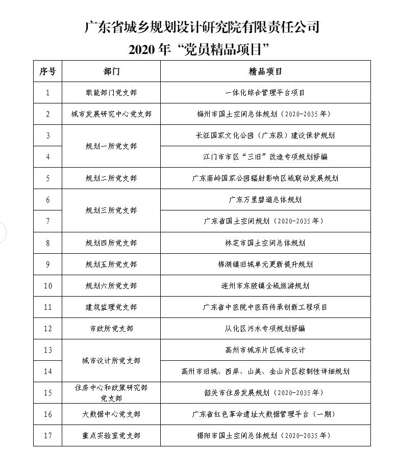 自2012年起,省規(guī)劃院在全院業(yè)務(wù)黨支部中創(chuàng)新開展“黨員精品項目”,以黨員和支部為項目牽頭或骨干力量,圍繞院重大技術(shù)攻關(guān)項目,援藏援疆、精準(zhǔn)扶貧等政治任務(wù)開展。活動體現(xiàn)“三個一”特色,即每年打造一批黨員“精品項目”,組織一次黨支部間的項目學(xué)習(xí)交流,策劃一次“精品項目”集中宣傳。目前,在深度參與粵港澳大灣區(qū)建設(shè)、國土空間規(guī)劃、鄉(xiāng)村振興戰(zhàn)略、歷史文化保護(hù)利用、大數(shù)據(jù)智能規(guī)劃、現(xiàn)代建造、廣東萬里碧道建設(shè)總體規(guī)劃等院重點工作中,該項工作發(fā)揮出黨員先鋒模范作用和黨支部戰(zhàn)斗堡壘作用,在全院乃至行業(yè)內(nèi)樹立起新時代黨員規(guī)劃師的新形象,為項目攻關(guān)、技術(shù)克難作出了重要貢獻(xiàn)。