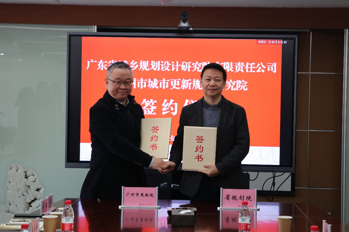 為加強(qiáng)業(yè)務(wù)交流,促進(jìn)合作共贏,1月13日,廣東省城鄉(xiāng)規(guī)劃設(shè)計(jì)研究院有限責(zé)任公司(下稱“我司”)與廣州市城市更新規(guī)劃研究院(下稱“市更新院”)戰(zhàn)略合作框架協(xié)議簽約儀式在廣州舉行。市更新院駱建云院長(zhǎng)、佟旋副院長(zhǎng)、陳琦總工程師,我司邱衍慶董事長(zhǎng)、王浩副總經(jīng)理、任慶昌副總經(jīng)理出席簽約儀式。