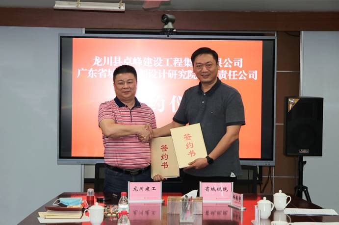 4月29日下午,廣東省城鄉(xiāng)規(guī)劃設(shè)計(jì)研究院有限責(zé)任公司(下稱“省城規(guī)院”)與龍川縣卓峰建設(shè)工程集團(tuán)有限公司(下稱“龍川卓峰建工集團(tuán)”)合作協(xié)議簽約儀式在省城規(guī)院舉行,省城規(guī)院黨委副書記、副總經(jīng)理王暉與龍川卓峰建工集團(tuán)總經(jīng)理?xiàng)罴臆姺謩e代表雙方簽約。龍川縣國有資產(chǎn)事務(wù)中心副主任、龍川縣國有資產(chǎn)經(jīng)營有限公司董事長陳少出席并見證簽約。