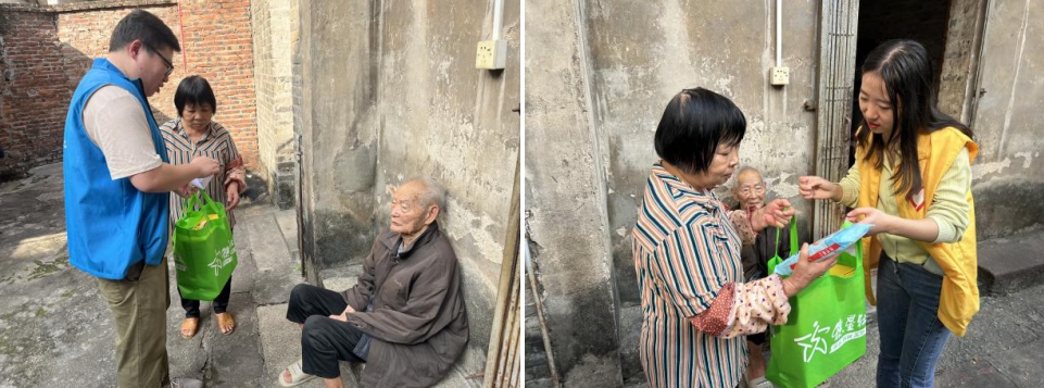 志愿者們和社工在服務(wù)站集合,分成3組分別前往南洲街和瀝滘片探訪4-5戶獨居老人,帶上精心準(zhǔn)備的“暖冬大禮包”整裝出發(fā)。