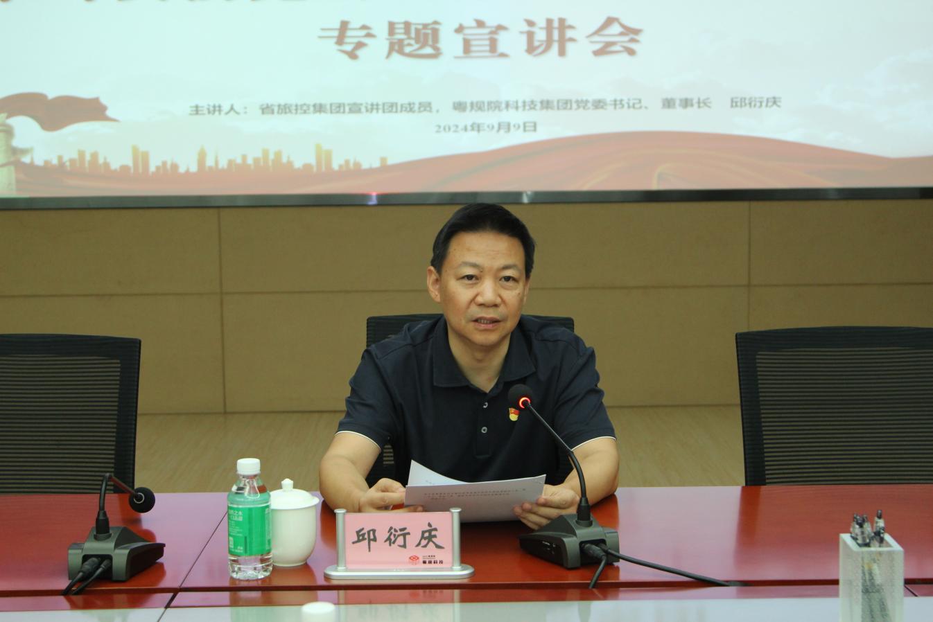 9月9日,粵規(guī)院科技集團(tuán)黨委舉辦學(xué)習(xí)貫徹黨的二十屆三中全會(huì)精神專(zhuān)題宣講會(huì),旅控集團(tuán)宣講團(tuán)成員、粵規(guī)院科技集團(tuán)黨委書(shū)記、董事長(zhǎng)邱衍慶作宣講報(bào)告,粵規(guī)院科技集團(tuán)黨委副書(shū)記、紀(jì)委書(shū)記黃高輝主持會(huì)議。