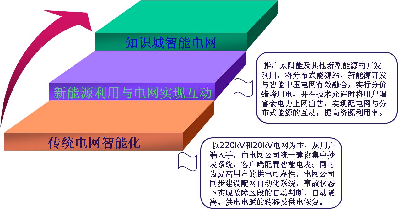 構(gòu)建綠色智能電網(wǎng),積極推進(jìn)新能源應(yīng)用,率先推廣本地分布式電源與智能電網(wǎng)的有效融合;實現(xiàn)廣州知識城各類分布式電源、儲能裝置和用電設(shè)施并網(wǎng)標(biāo)準(zhǔn)化和電網(wǎng)運行控制智能化。