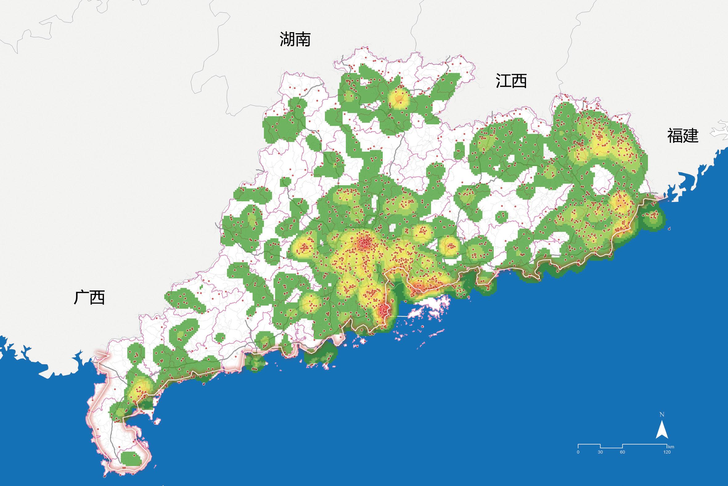 濱海公路跨越 14 個地級市,總長度超過 1000km;研究的范圍較大。通過利用 POI 數(shù)據(jù)、百度指數(shù)數(shù)據(jù)等一列多源數(shù)據(jù),初步尋找濱海公路沿線的熱門景點、特色村莊、產(chǎn)業(yè)園區(qū),并分析其形成機制,以優(yōu)化原有選線,支撐方案落實。