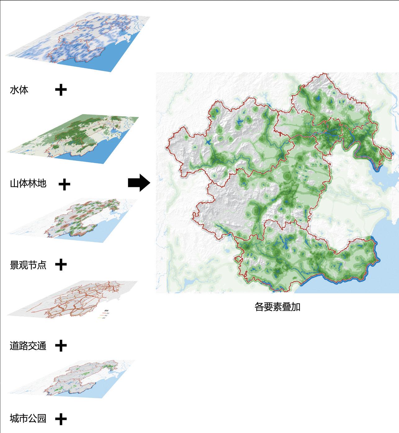 利用 GIS 分析平臺,對揭陽市域各類生態(tài)、人文要素進行分析,梳理出綠道規(guī)劃需要協(xié)調(diào)和串聯(lián)的各個要素。