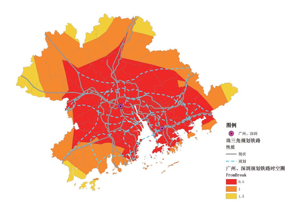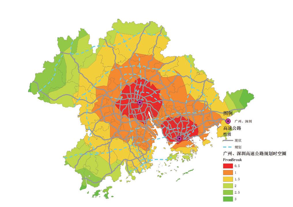 基于要素流動(dòng)特征總結(jié)粵港澳大灣區(qū)發(fā)展規(guī)律,預(yù)判2020 年、2030 年六大要素以廣州、深圳為核心的蔓延邊界,識(shí)別灣區(qū)范圍,判斷灣區(qū)潛力發(fā)展地區(qū)。
