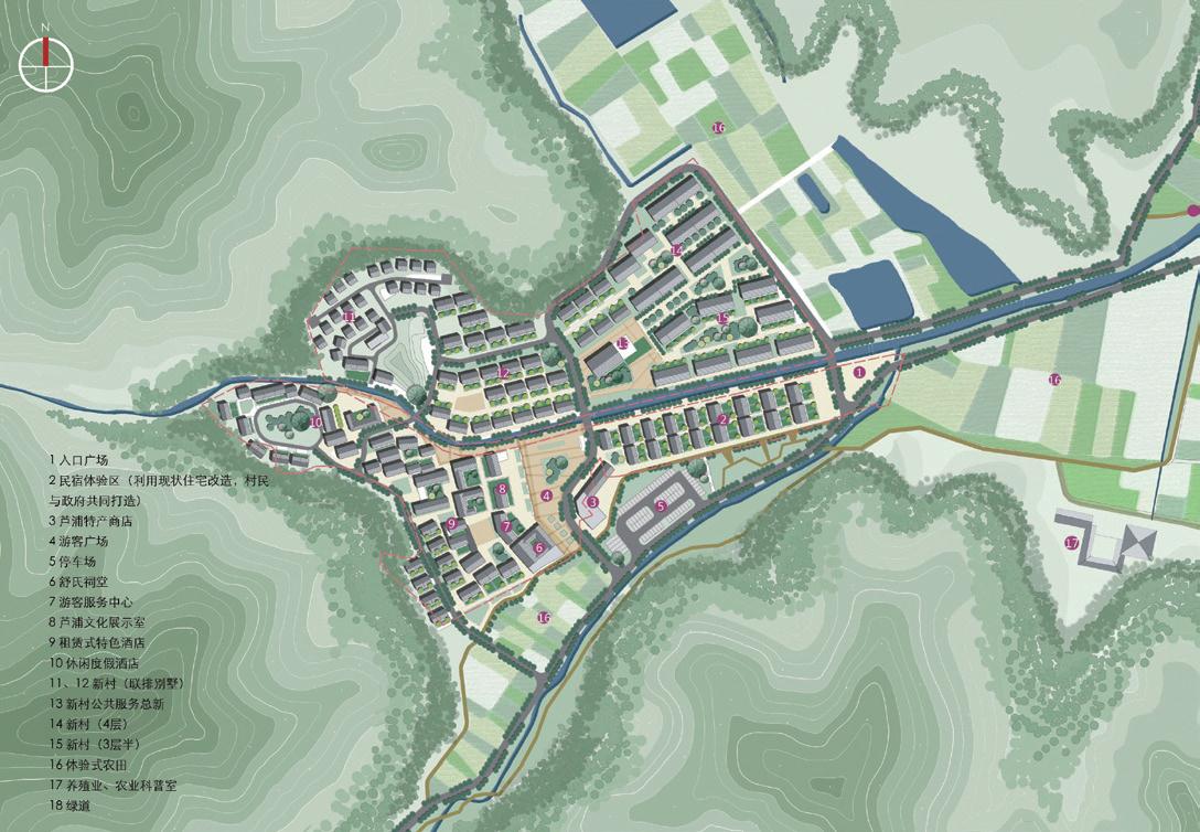 “兩心”:圍繞舒氏祠堂,在蘆浦溪南岸打造配套服務中心;依托各類服務設施在蘆浦溪北岸打造新村社區(qū)服務中心。