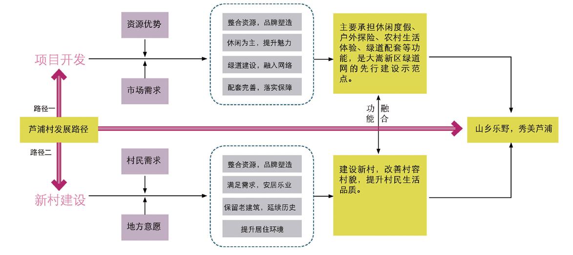 多元化的發(fā)展策略“浦水為軸,營造兩岸活力紐帶;變廢為寶,延續(xù)村落歷史印記;動靜分區(qū),合理劃定功能組團;主題帶動,引導分區(qū)建設重點”。