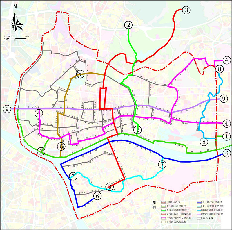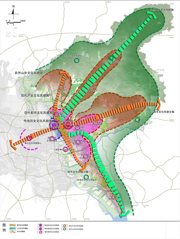 規(guī)劃構(gòu)建了覆蓋全市域、“市域-片區(qū)-街區(qū)”3個(gè)層面的“一體化”規(guī)劃編制體系。在市域?qū)用?,編制“廣州市文化風(fēng)貌營(yíng)造研究”,從總體角度研究廣州的風(fēng)貌特色、城市形象和文化風(fēng)貌格局。在片區(qū)層面,制定舊城區(qū)歷史文化風(fēng)貌體系營(yíng)造規(guī)劃和番禺片區(qū)(嶺南水鄉(xiāng))、南沙片區(qū)(濱海田園)、東部片區(qū)(青山碧水)、北部片區(qū)(山水和嶺南田園)現(xiàn)代文化風(fēng)貌特色營(yíng)造研究。在街區(qū)層面,選取光復(fù)南歷史文化街區(qū)制定保護(hù)專(zhuān)項(xiàng)控制性規(guī)劃,進(jìn)一步探討傳統(tǒng)街區(qū)風(fēng)貌保護(hù)與控制的規(guī)劃方法,為同類(lèi)規(guī)劃編制提供參考。