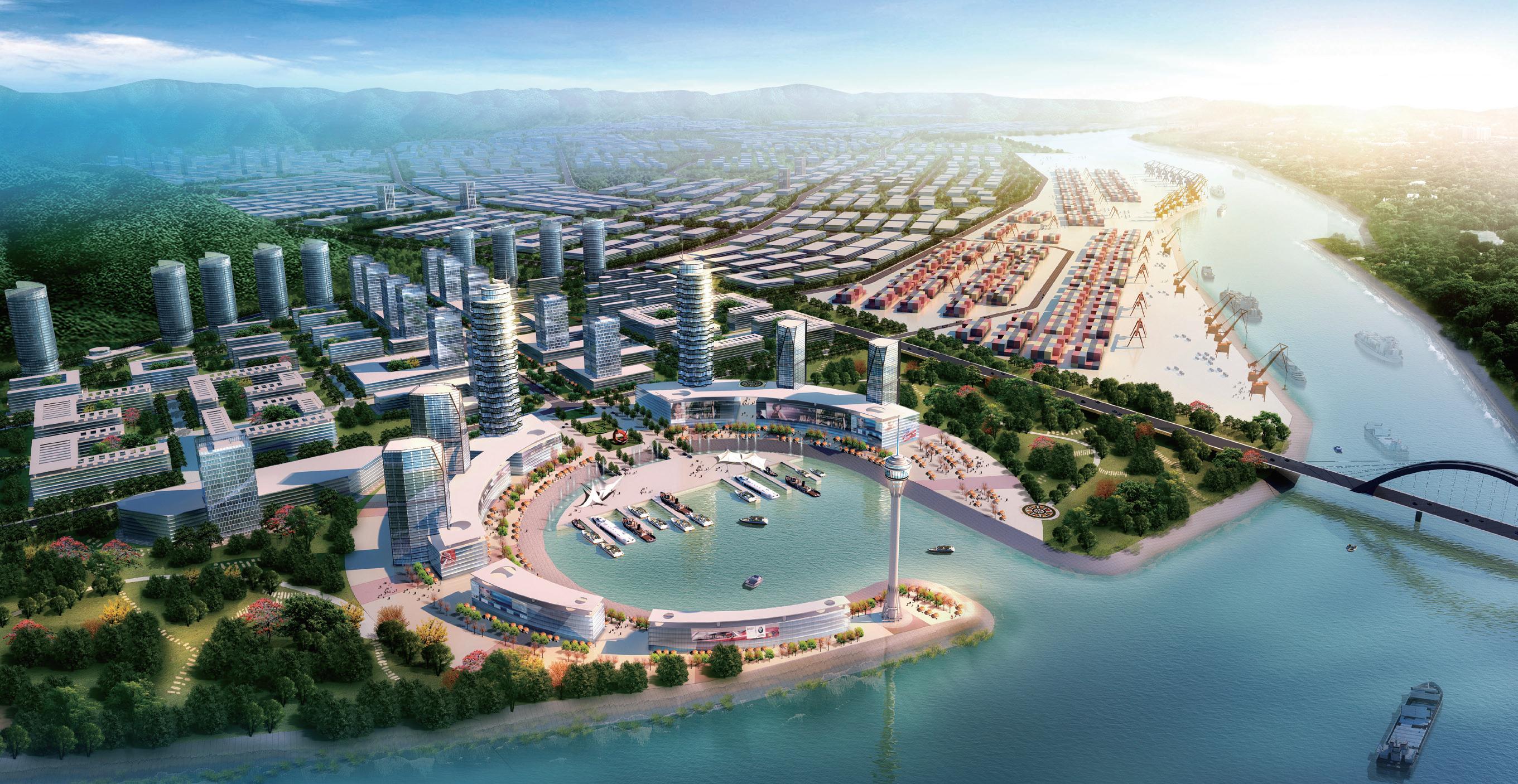 臨港經(jīng)濟(jì)開(kāi)發(fā)區(qū)的規(guī)劃建設(shè),需要站在大宜賓城市整體發(fā)展和空間格局重構(gòu)的戰(zhàn)略高度,制定開(kāi)發(fā)區(qū)新一輪的規(guī)劃建設(shè)目標(biāo)和策略。規(guī)劃以借勢(shì)成渝、聯(lián)動(dòng)川南、輻射滇黔為構(gòu)思要點(diǎn),以建設(shè)新城、推動(dòng)宜賓 “東進(jìn)”、構(gòu)建新時(shí)期大宜賓城市空間新格局為長(zhǎng)遠(yuǎn)目標(biāo)。立足于以港創(chuàng)業(yè)、以港興城、城園互動(dòng)、“港—園—城”一體化的規(guī)劃建設(shè)模式,著力構(gòu)建新時(shí)期的“新港 新城 新宜賓”,構(gòu)建出港口、產(chǎn)業(yè)、住居環(huán)境協(xié)調(diào)發(fā)展的臨港新城,打造出山河秀色與城市空間融為一體的首善之區(qū)。