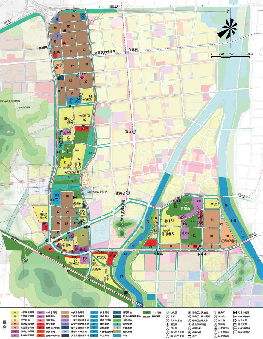 結(jié)合上位規(guī)劃對(duì)規(guī)劃區(qū)的定位、規(guī)劃區(qū)發(fā)展現(xiàn)狀和對(duì)規(guī)劃區(qū)的解讀研判,確定規(guī)劃區(qū)的功能定位為:福山區(qū)“產(chǎn) - 城 - 區(qū)”交匯發(fā)展的縫合區(qū)產(chǎn)城融合的生活型服務(wù)的示范區(qū)。