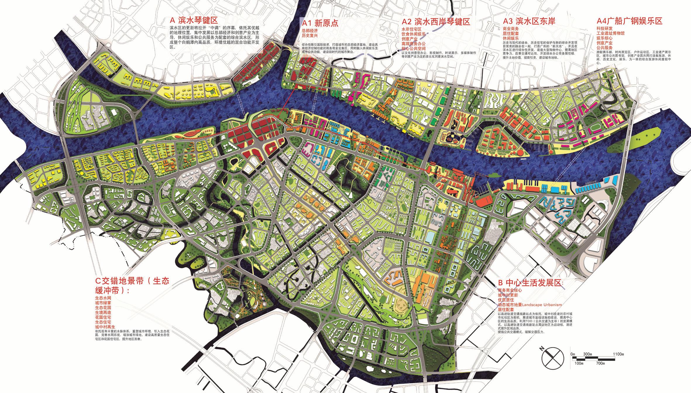 廣州西部的重要城市節(jié)點(diǎn),廣州西聯(lián)的的橋頭堡,以總部經(jīng)濟(jì)、創(chuàng)意產(chǎn)業(yè)、休閑娛樂(lè)、商貿(mào)物流和居住為主導(dǎo)功能的濱水城區(qū)。