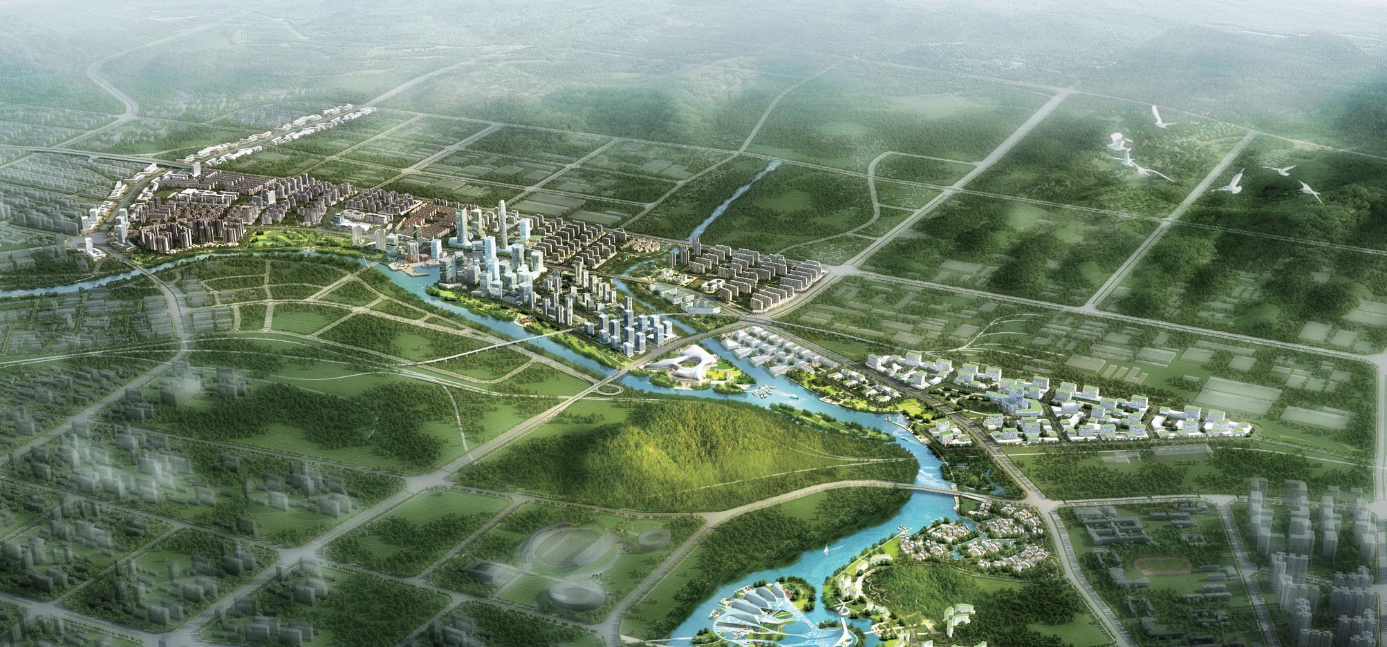 項(xiàng)目位于湖南省婁底市經(jīng)濟(jì)技術(shù)開(kāi)發(fā)區(qū)中部。區(qū)域內(nèi)外交通發(fā)達(dá),擁有豐富的景觀資源和明顯的區(qū)位優(yōu)勢(shì)。項(xiàng)目組運(yùn)用“產(chǎn)城融合,以水興城”的規(guī)劃理念,在結(jié)構(gòu)與功能上深入思考,形成“一心兩帶五楔六片區(qū)”的功能結(jié)構(gòu),對(duì)于山地丘陵地區(qū)的場(chǎng)地高差設(shè)計(jì),也做了大量的研究,大膽創(chuàng)新,達(dá)到了理想與現(xiàn)實(shí)的完美結(jié)合。