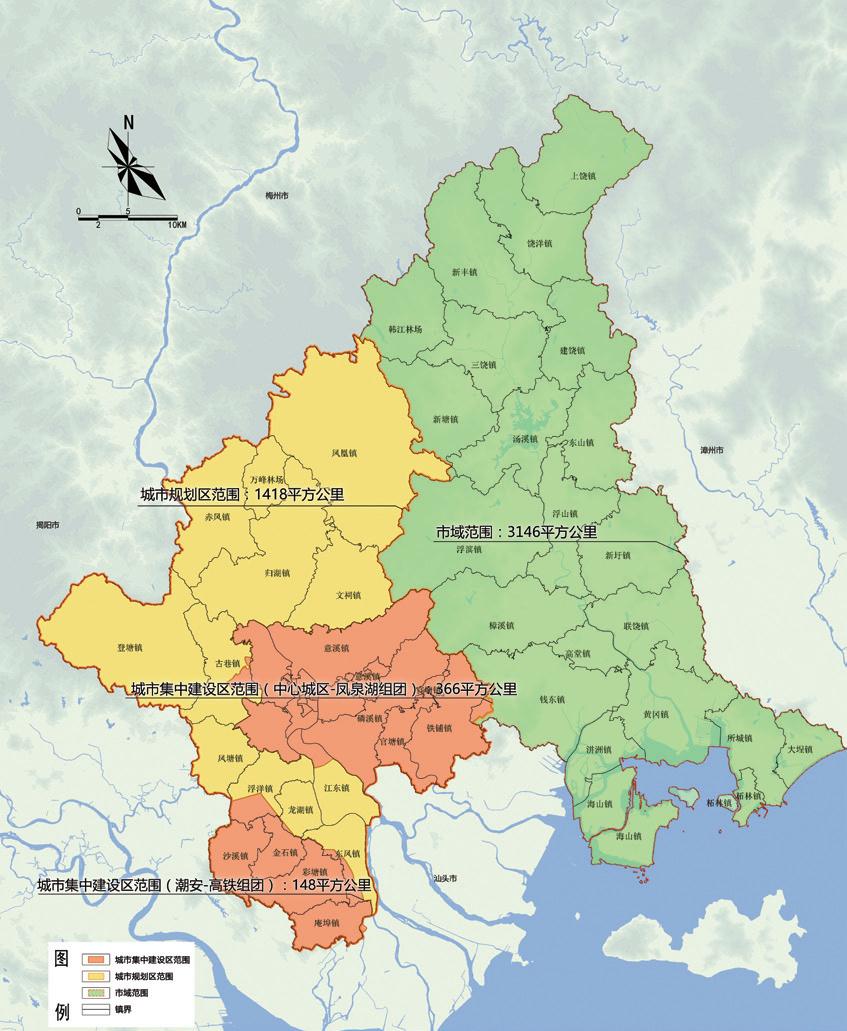本次潮州總規(guī)專門編制了兩規(guī)(總規(guī)與土規(guī)中期調(diào)整完善成果)銜接報(bào)告,以保證潮州總規(guī) 2020 年城鄉(xiāng)建設(shè)用地規(guī)模與國(guó)土規(guī)劃中期調(diào)整的規(guī)模完全銜接一致,且在空間布局上基本對(duì)接一致。