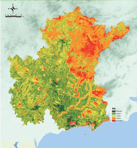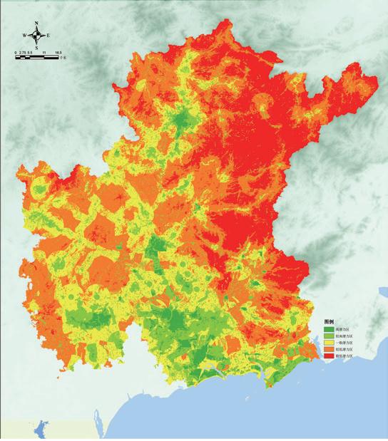 規(guī)劃充分運用 GIS 空間分析技術,強化研究分析的科學性和可實施性。規(guī)劃從保障城市發(fā)展的角度出發(fā),重點對全市地形地貌等工程建設類因子的適宜性以及交通區(qū)位優(yōu)勢、人口密度分布等社會經濟因子和規(guī)劃建設用地、重點建設項目、開采礦區(qū)等規(guī)劃控制因子進行分析,識別城鎮(zhèn)建設空間和拓展?jié)摿υ鲩L空間,明確未來城鎮(zhèn)建設的重點區(qū)域。從生態(tài)空間保護出發(fā),重點對水、土壤、生物、水土流失等因子分別進行評價,對全市范圍進行生態(tài)敏感性綜合分析,并對自然保護區(qū)、水源保護區(qū)、基本農田等生態(tài)要素進行分類識別,確定生態(tài)保護重要空間。