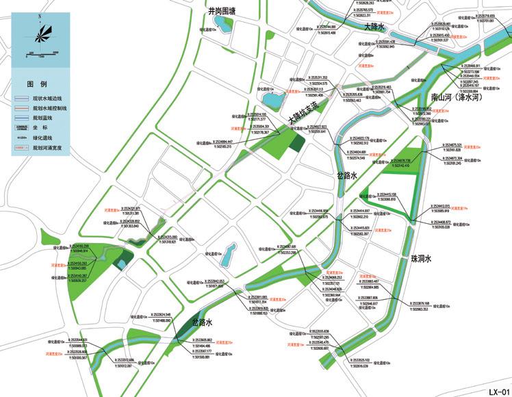 將藍(lán)線落實到坐標(biāo),為海綿措施提供空間保障。按照建設(shè)區(qū)和非建設(shè)區(qū)劃定建(構(gòu))筑物退河道邊線最小距離,提出保護策略。