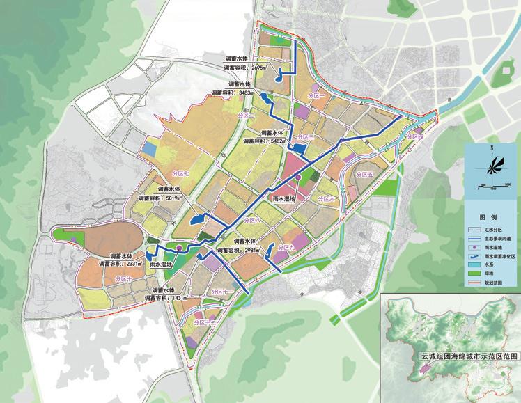 在示范區(qū)海綿系統(tǒng)方案的基礎(chǔ)上,以豎向、排水防澇、水環(huán)境治理、水資源利用等規(guī)劃作為技術(shù)支撐,指導(dǎo)工程實施。