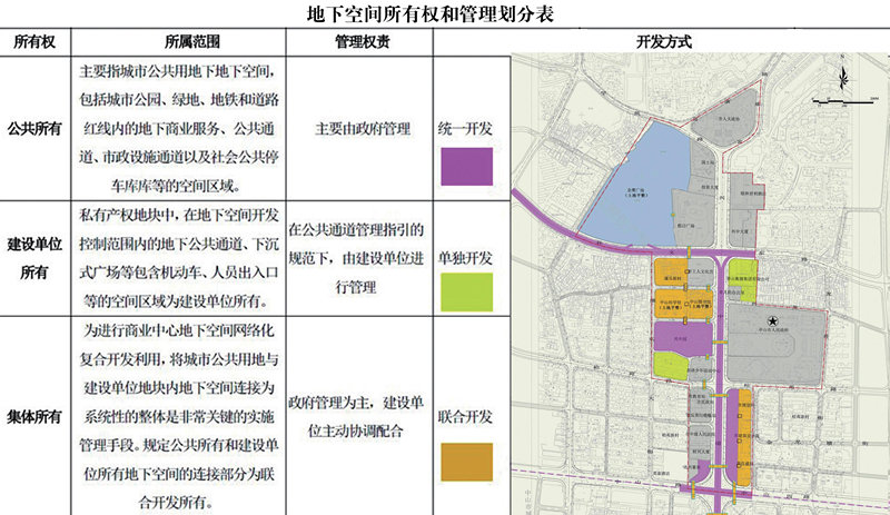 面對分散多元的既有產(chǎn)權(quán)主體、多重利益博弈、發(fā)展權(quán)和開發(fā)利益的再分配等復(fù)雜矛盾,規(guī)劃成果包含對所有權(quán)和管理劃分、地下空間土地出讓方式、配套法規(guī)與制度建設(shè)等方面的建議和引導(dǎo),強(qiáng)化編制內(nèi)容與實(shí)施管理的銜接融合。