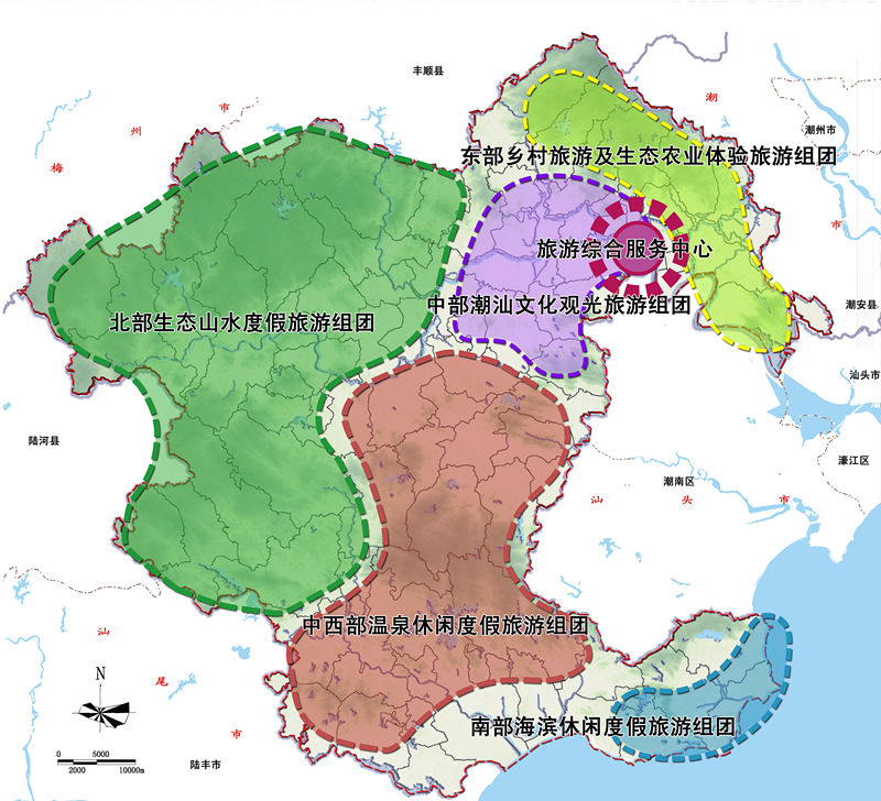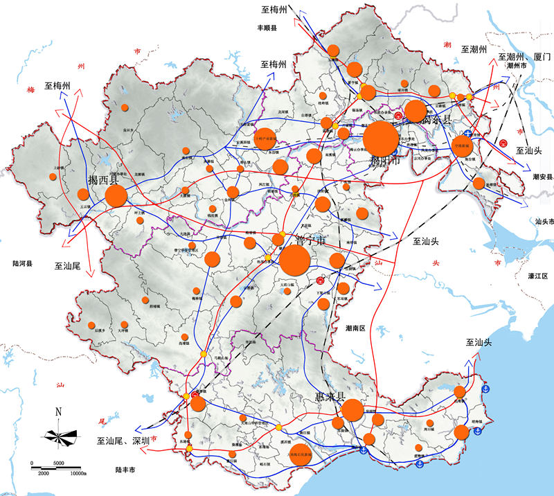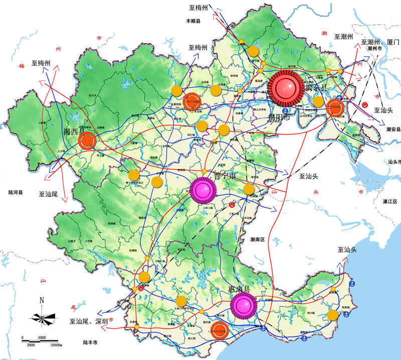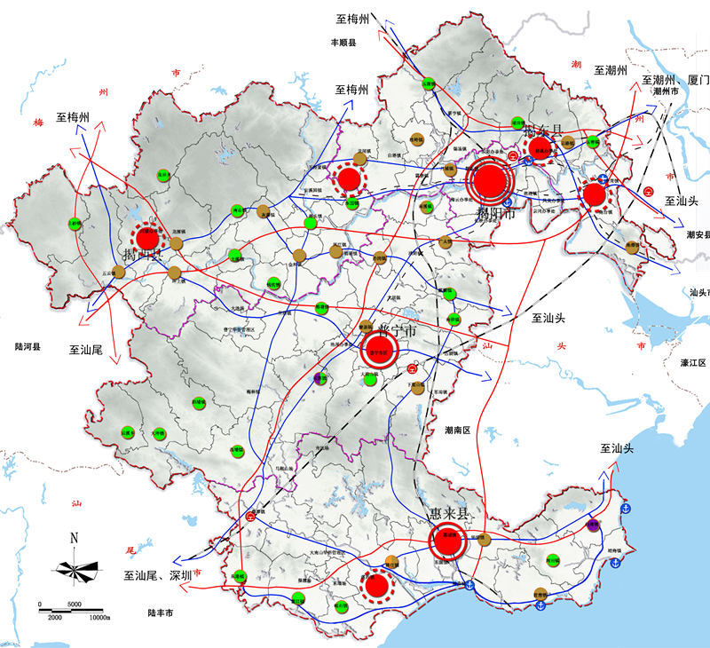 揭陽(yáng)潮汕文化歷史悠久,是粵東地區(qū)面積最大、人口最多的地級(jí)市。在《珠江三角洲地區(qū)改革發(fā)展規(guī)劃綱要》要求以“珠三角”帶動(dòng)“環(huán)珠三角”發(fā)展,粵東現(xiàn)場(chǎng)會(huì)要求揭陽(yáng)以大項(xiàng)目帶動(dòng)大發(fā)展,揭陽(yáng)市委、市政府提出打造“特色經(jīng)濟(jì)、特色城市和特色文化”的總體部署的背景下,揭陽(yáng)啟動(dòng)了市域城鎮(zhèn)體系規(guī)劃的編制工作,規(guī)劃突出強(qiáng)調(diào)了以下三個(gè)方面的特點(diǎn):