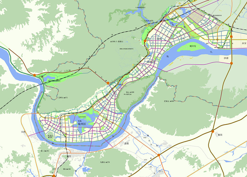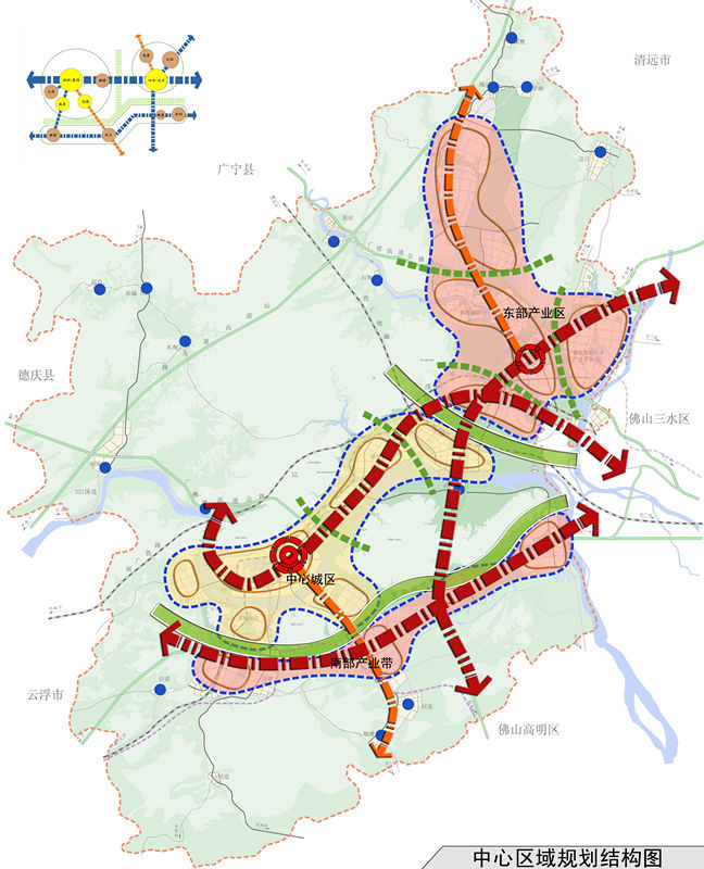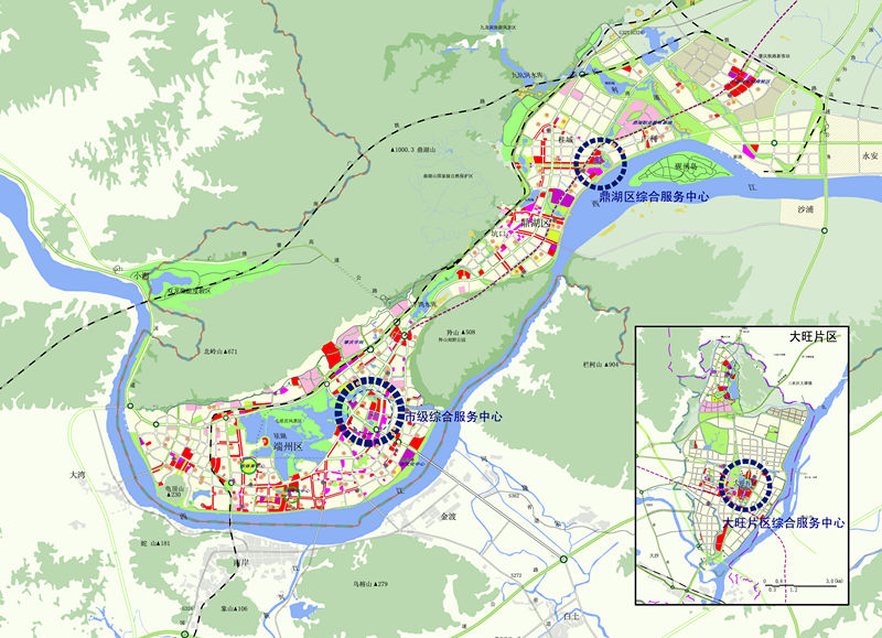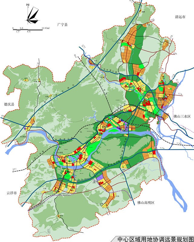 規(guī)劃從分析廣東省產(chǎn)業(yè)轉(zhuǎn)移、區(qū)域一體化等背景出發(fā),對肇慶承接產(chǎn)業(yè)轉(zhuǎn)移以及產(chǎn)業(yè)快速發(fā)展過程中,城市特色資源面臨巨大挑戰(zhàn)、環(huán)境保護(hù)壓力劇增等問題,對工業(yè)發(fā)展與風(fēng)景旅游城市建設(shè)、歷史文化名城保護(hù)的矛盾沖突;對區(qū)域一體化下的城市特色的同質(zhì)化等問題進(jìn)行綜合分析,提出了“集聚發(fā)展”、“精明增長”、“平行推進(jìn)”、“特色提升”四大發(fā)展策略,并強(qiáng)化組團(tuán)式軸向發(fā)展,實施分區(qū)引導(dǎo)控制,適當(dāng)分離工業(yè)與居住生活服務(wù)空間,優(yōu)化城市空間資源配置,以科學(xué)引導(dǎo)肇慶城市發(fā)展。