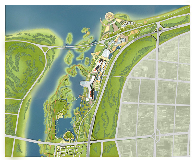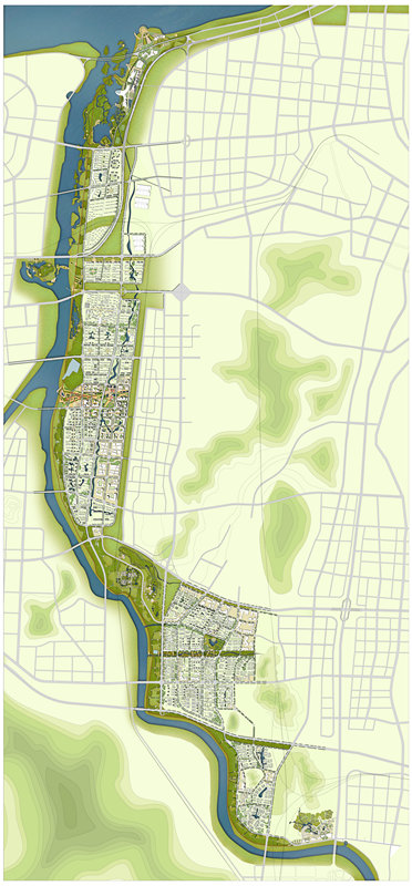 縫合城市:改變傳統(tǒng)新區(qū)規(guī)劃的慣用思路,不是推翻原有規(guī)劃及現(xiàn)狀進行重新規(guī)劃,而是針對區(qū)內(nèi)及周邊既有規(guī)劃以及基礎(chǔ)設(shè)施和產(chǎn)業(yè)的發(fā)展建設(shè)情況,以規(guī)劃總體目標及總體構(gòu)想為指導(dǎo)進行優(yōu)化提升,實現(xiàn)夾河沿線三區(qū)的“設(shè)施整合、功能融合、產(chǎn)業(yè)聚合”。