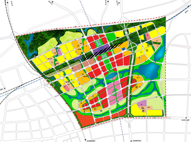 3. 項目面對的是一個新城開發(fā)地區(qū),本項目在總結(jié)國內(nèi)外新城開發(fā)的很多經(jīng)驗教訓(xùn)的基礎(chǔ)上,提出本地區(qū)新城開發(fā)的模式——TOD、SOD、EOD、LOD的多元聯(lián)動模式。在這個模式的探討中,項目組結(jié)合深圳新區(qū)開發(fā)的優(yōu)秀經(jīng)驗,在內(nèi)地城市湘潭九華的規(guī)劃中予以借鑒和推廣。