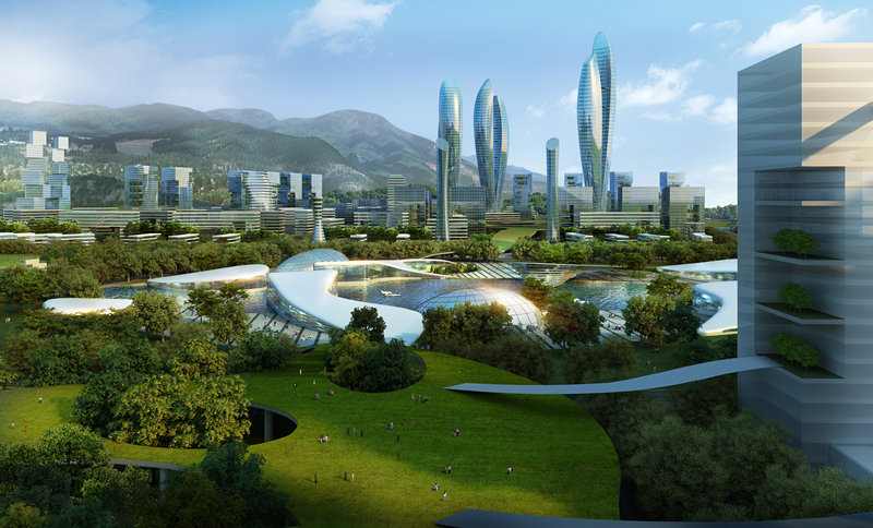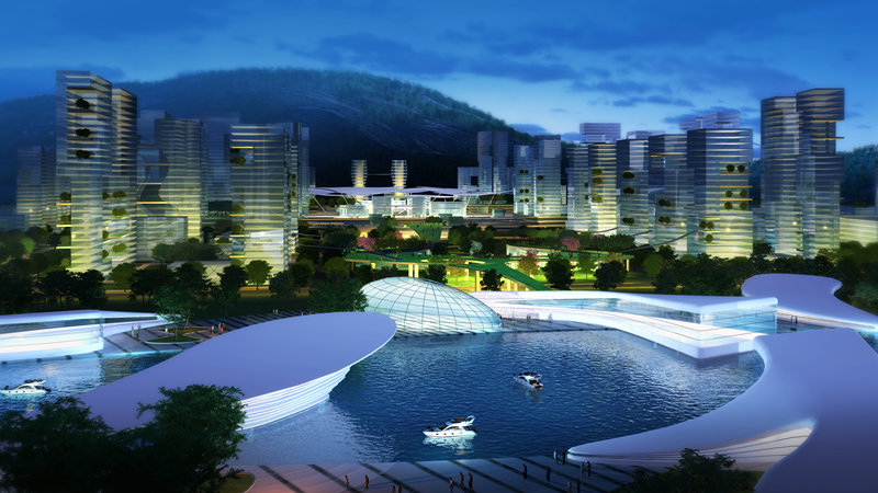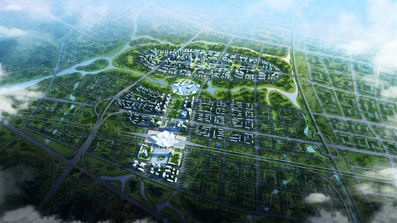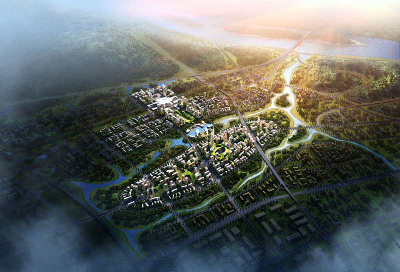 2. 城市的主導(dǎo)功能的確定上,項目很好的解決了規(guī)劃定位的務(wù)實與體現(xiàn)政府雄心之間的關(guān)系。提出了都市建筑綜合體,強調(diào)人文、生態(tài)與商務(wù)活動綜合——九華新國際商務(wù)世界——大自然中的健康式與休閑式相結(jié)合的“新國際商務(wù)世界”, 是東方文化式的國際商務(wù)。