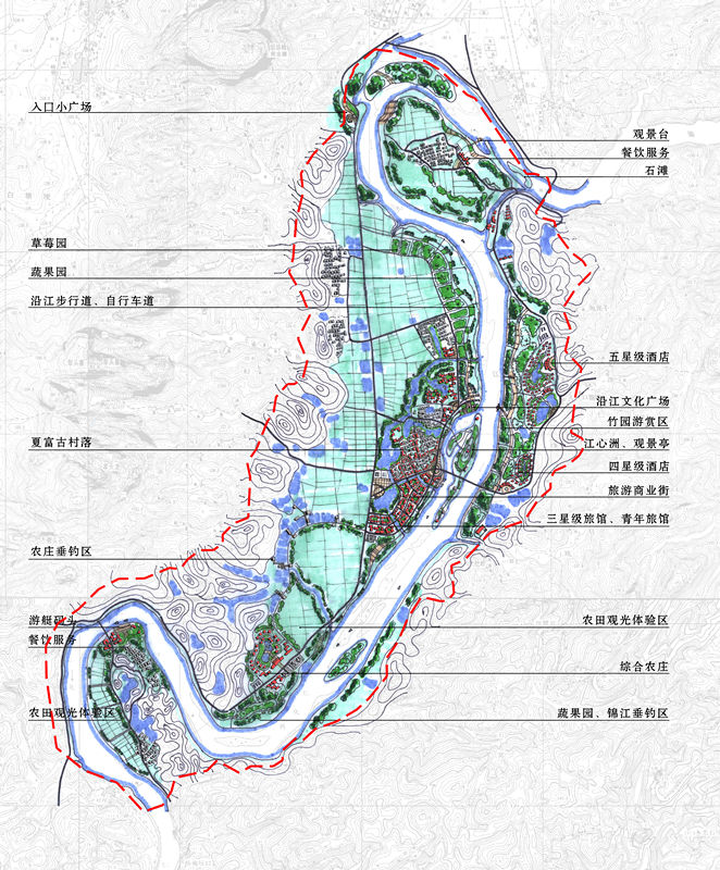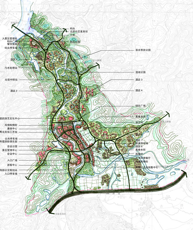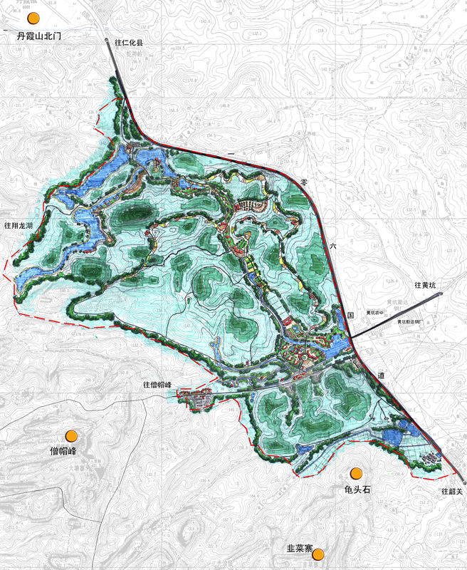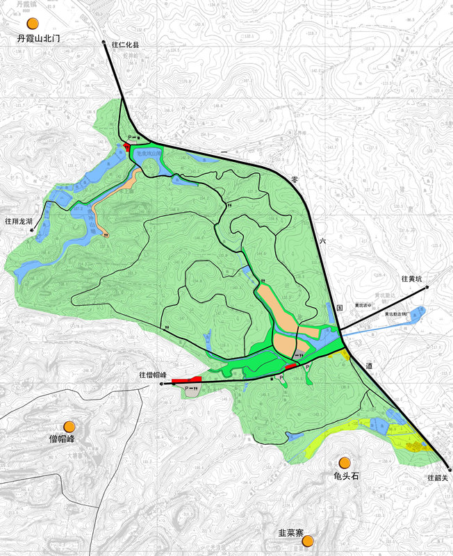 丹霞山是世界丹霞地貌的命名地和杰出代表,擁有國(guó)家級(jí)風(fēng)景名勝區(qū)、國(guó)家級(jí)自然保護(hù)區(qū)等稱號(hào)。2010年8月正式列入《世界遺產(chǎn)名錄》,給風(fēng)景名勝區(qū)的保護(hù)和開(kāi)發(fā)帶來(lái)了新的發(fā)展契機(jī)和更加嚴(yán)格的保護(hù)要求。為了保護(hù)資源和提升服務(wù)設(shè)施水平,風(fēng)景區(qū)在對(duì)景觀資源分析和保護(hù)分級(jí)的基礎(chǔ)上建立對(duì)景觀沖擊性最小化的服務(wù)設(shè)施系統(tǒng)。南門服務(wù)基地片區(qū)、夏富片區(qū)、龍皇坪片區(qū)分別是風(fēng)景區(qū)服務(wù)設(shè)施系統(tǒng)中服務(wù)基地、服務(wù)中心、服務(wù)點(diǎn)的重要代表,三片區(qū)的開(kāi)發(fā)建設(shè)將極大推動(dòng)丹霞山風(fēng)景名勝區(qū)的整體開(kāi)發(fā),提升風(fēng)景區(qū)的服務(wù)配套設(shè)施水平。
