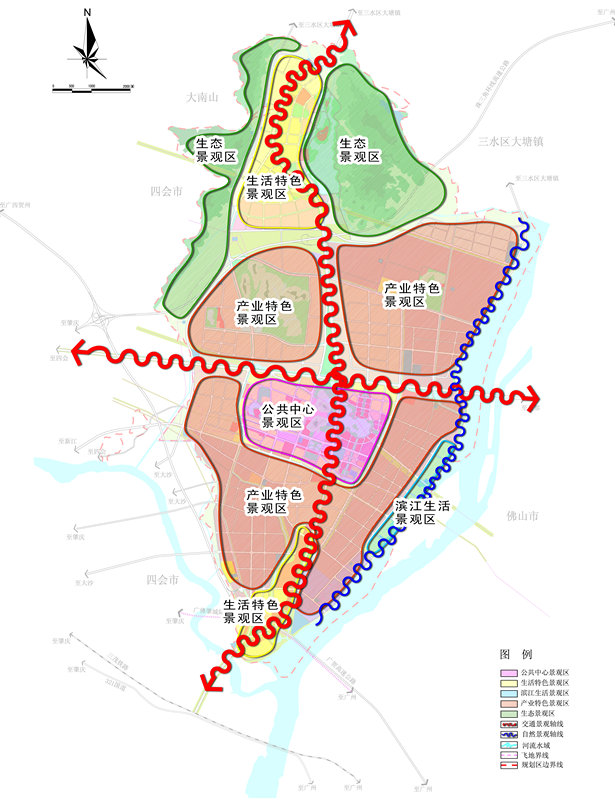 4. 公共服務(wù)設(shè)施布局兼顧安居和樂業(yè)的要求。規(guī)劃兼顧安居和樂業(yè)的服務(wù)配套支撐要求,根據(jù)“大集中,小分散”的原則,采用園區(qū)級、鄰里級兩級布置,園區(qū)級公共中心主要布置中高端生產(chǎn)、生活配套設(shè)施,鄰里中心以不超過1000米的服務(wù)半徑布置居民日常生活配套設(shè)施。