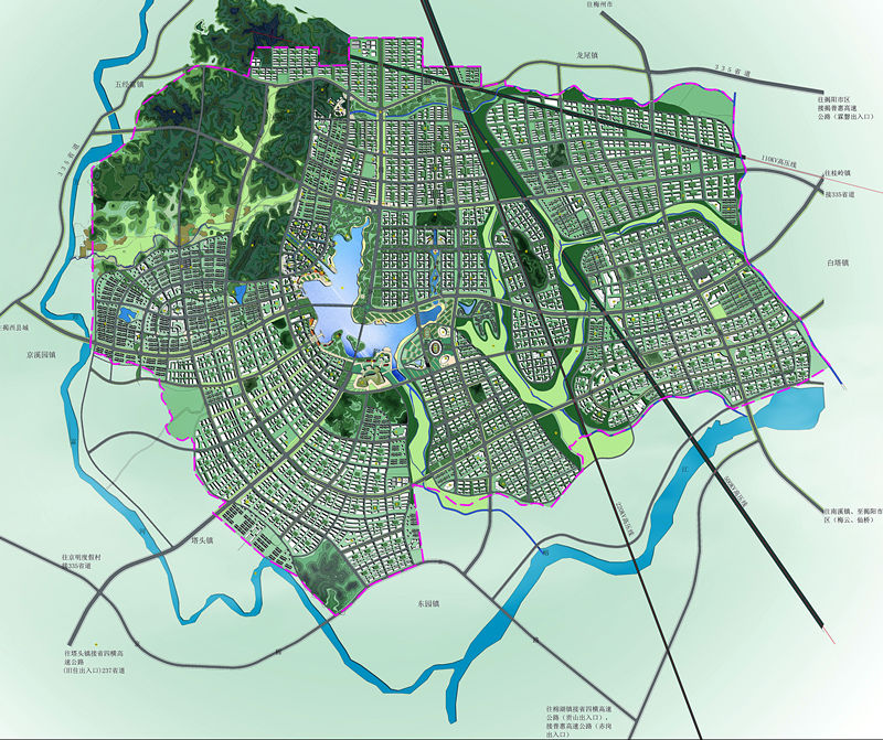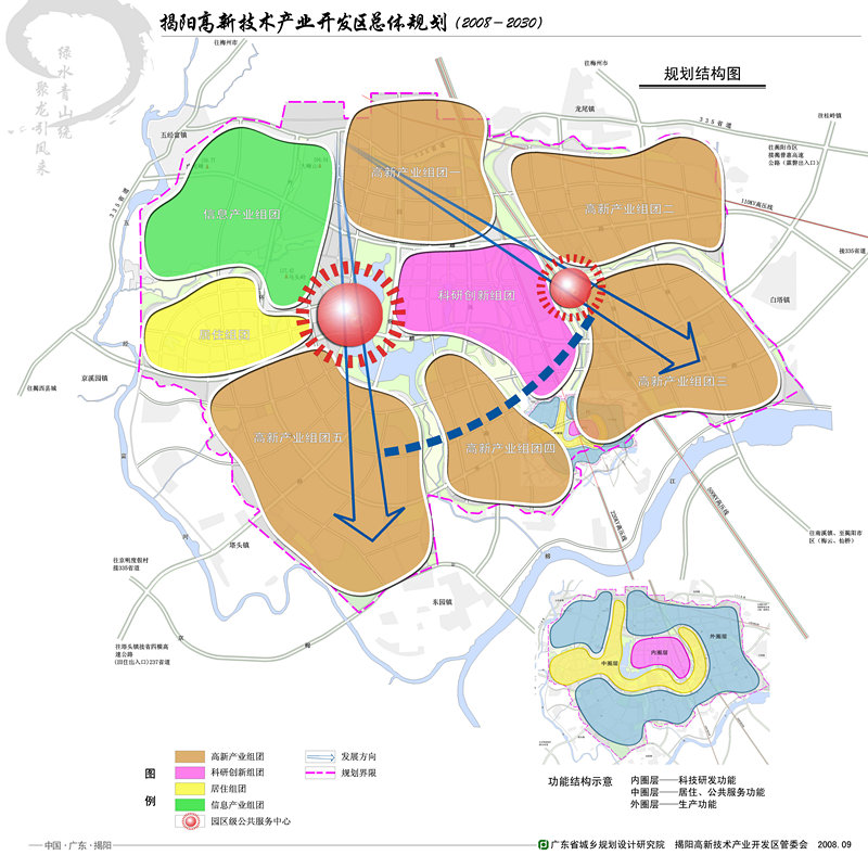 每個(gè)產(chǎn)業(yè)島作為一個(gè)產(chǎn)業(yè)組團(tuán),產(chǎn)業(yè)組團(tuán)的開(kāi)發(fā)可根據(jù)進(jìn)駐企業(yè)的情況實(shí)施分期建設(shè),其發(fā)展并不影響其它產(chǎn)業(yè)組團(tuán)的開(kāi)發(fā),從而既可以保證規(guī)劃結(jié)構(gòu)的完整性,又可以保證片區(qū)發(fā)展的靈活性。島與島之間以狹長(zhǎng)谷地(農(nóng)田)作為生態(tài)隔離,維持高新區(qū)良好的生態(tài)結(jié)構(gòu)。