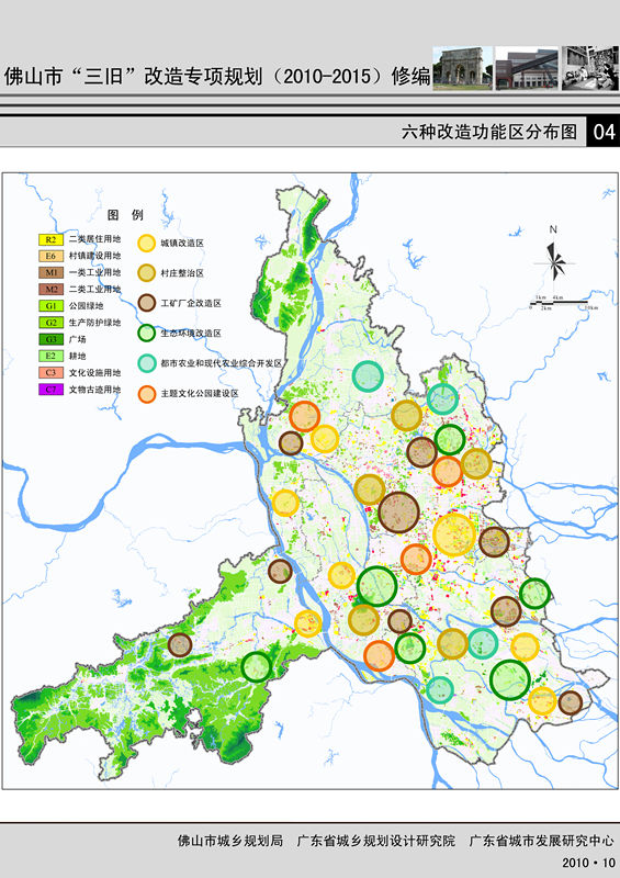 (1)Put forward the delimiting principles of "two red lines, and respective management", determine that urban-rural redevelopment will support the overall development goal of "modern manufacturing base, industry service center, Lingnan cultural city, and beautiful and rich home", promote the "industry transformation, urban transformation and environment reengineering" of Foshan, emphasize on the public benefit of urban-rural redevelopment, and put forward the special guidance for “making decrement, increasing green, and reflecting the people's livelihood ".